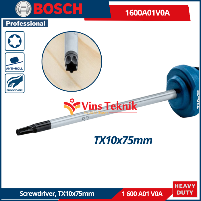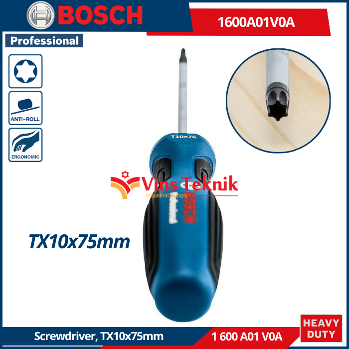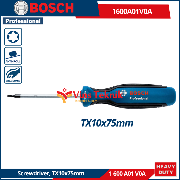 Bosch 1600A01V0A adalah obeng Torx TX10 x 75 mm Professional yang dirancang untuk penggunaan industri dan profesional. Alat ini merupakan bagian dari lini hand tools Bosch Professional yang mengutamakan daya tahan