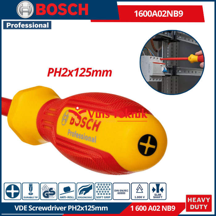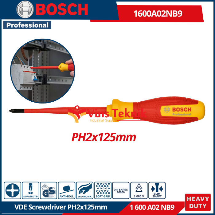 BOSCH 1 600 A02 NB9 Obeng Plus Listrik VDE Screwdriver PH2x125mm