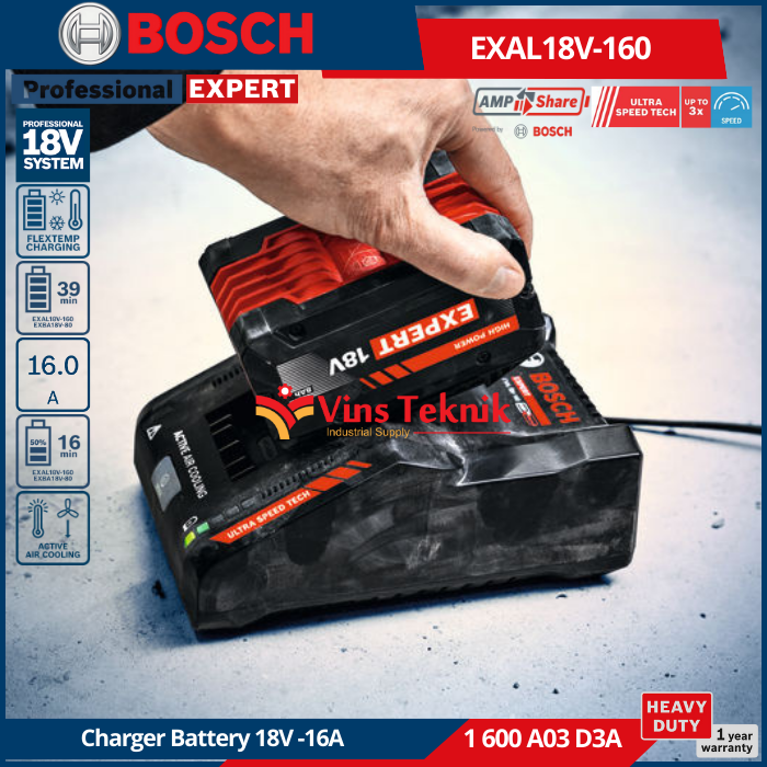 BOSCH EXAL18V-160 Pengisi Daya Charger Battery Charger Cordless 18V - 16A EXAL 18V-160
