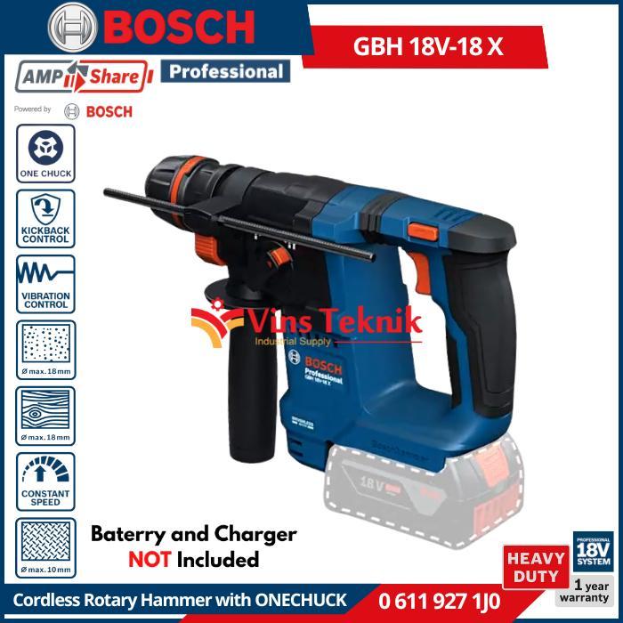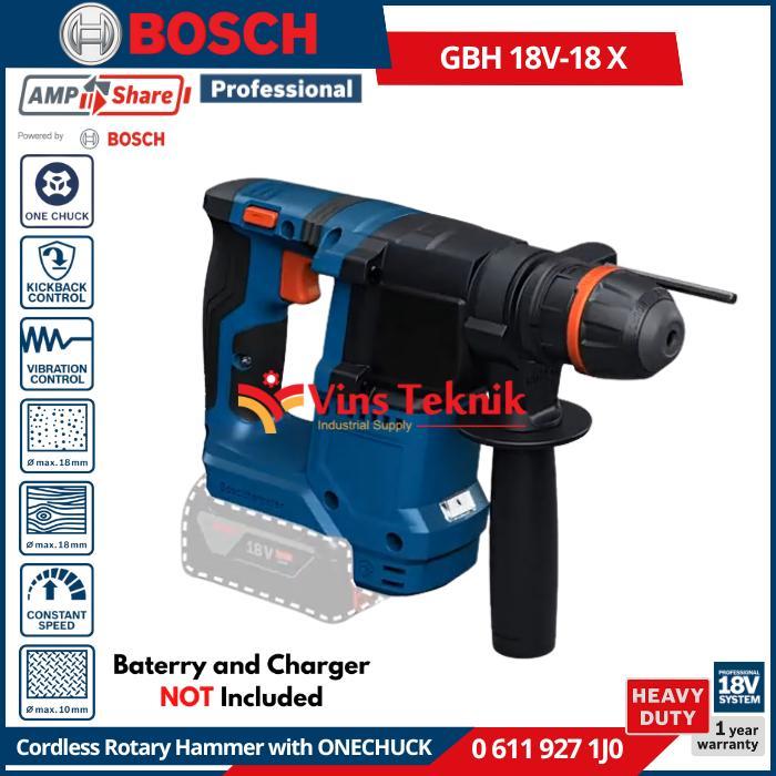 BOSCH GBH 18V-18 X Mesin Bor Tembok Beton Baterai Cordless Rotary Hammer 18mm 18V SDS Plus GBH18V-18X