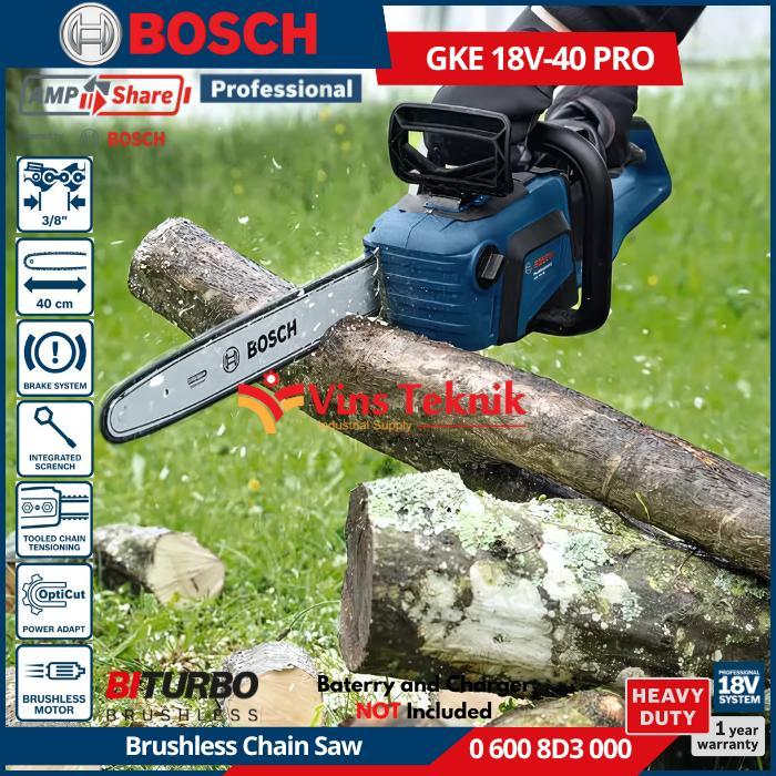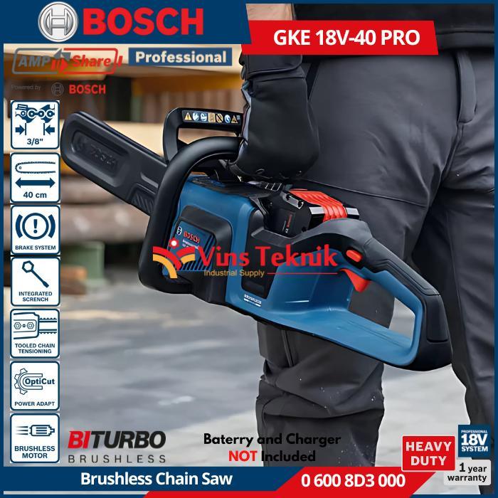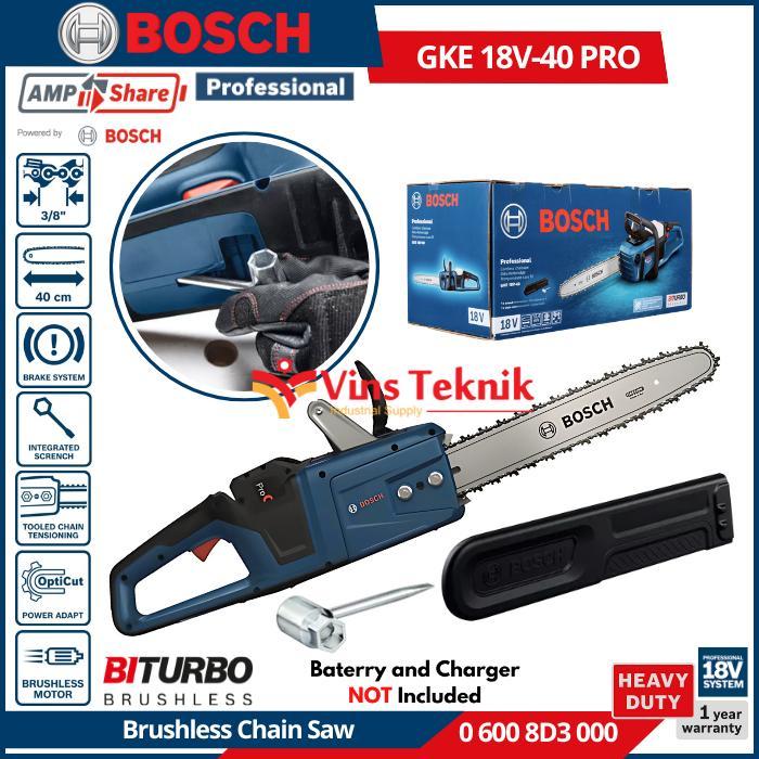 BOSCH GKE 18V-40 Mesin Potong Kayu Baterai 18V Brushless Chain Saw 40cm GKE18V-40