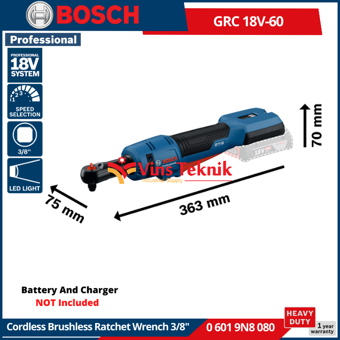 BOSCH GRC 18V-60 Mesin Pembuka Baut Cordless Brushless Compact Ratchet Wrench 60Nm 3/8" 18V GRC18V-60
