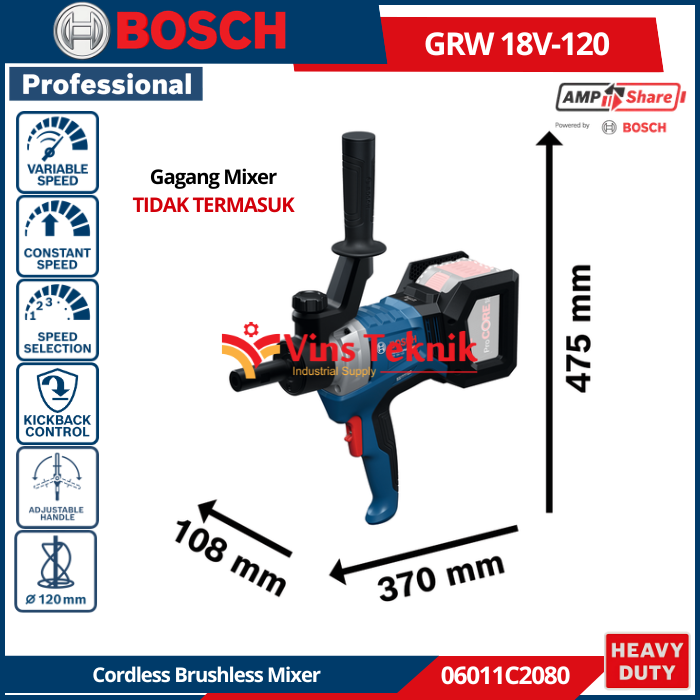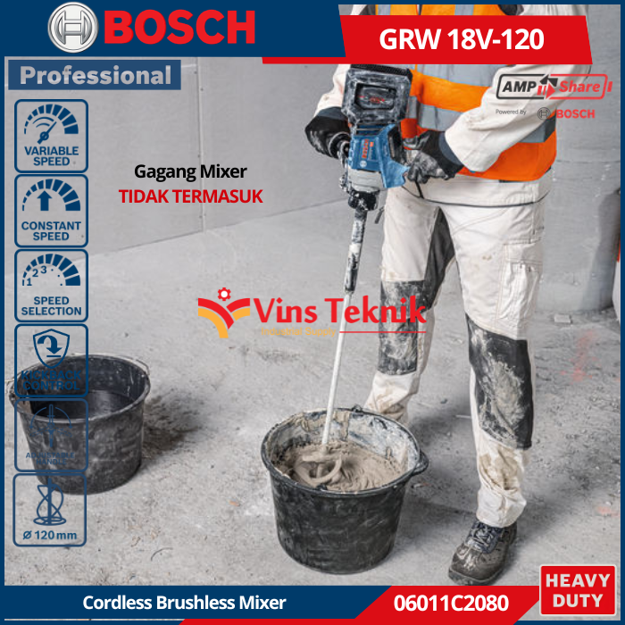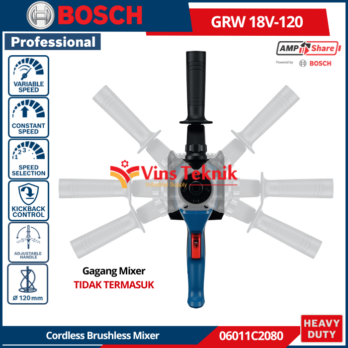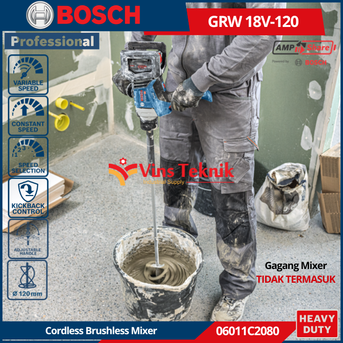Pengaturan Kecepatan Variabel : Dilengkapi dengan 3 opsi penyesuaian... Read More Bosch GRW 18V-120 Professional adalah mesin pengaduk (stirrer) nirkabel yang dirancang untuk mencampur material dalam jumlah kecil menggunakan ember kecil, seperti campuran mortar, cat, atau perekat ubin. Alat ini menggunakan teknologi motor brushless untuk performa yang bertenaga dan tahan lama