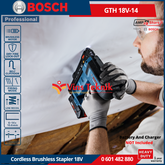BOSCH GTH 18V-14 Mesin Paku Tembak Kayu Baterai Cordless Brushless Wood Stapler 18V GTH18V-14