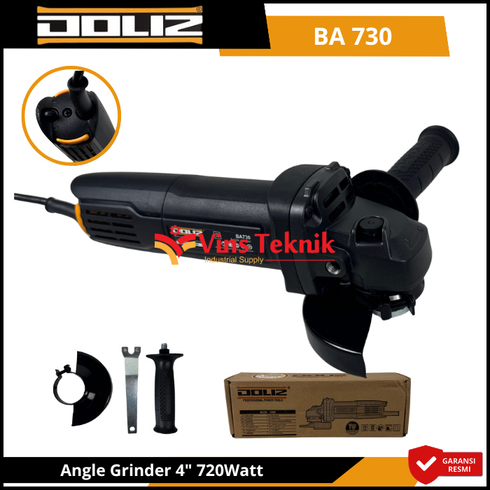 Doliz BA 730 adalah mesin gerinda tangan 4 inci yang dikenal karena desainnya yang sangat ramping (Slim Body) dan sistem penyaringan udara yang baik. Mesin ini dirancang untuk penggunaan jangka panjang dengan perlindungan ekstra terhadap debu