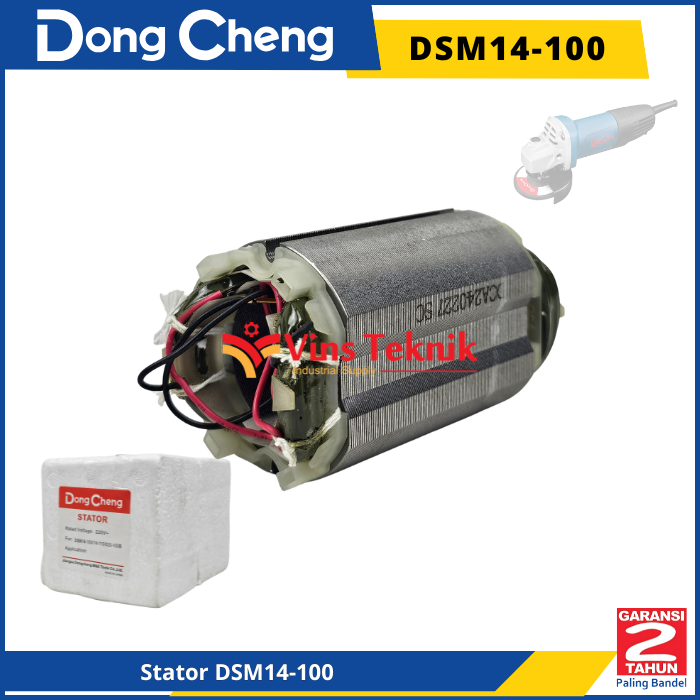 Stator untuk mesin gerinda tangan DongCheng DSM14-100 dirancang khusus untuk mendukung performa motor dengan daya input terukur sebesar 800 Watt. Suku cadang ini merupakan komponen elektrikal statis pada motor yang berfungsi menghasilkan medan magnet untuk memutar armature
