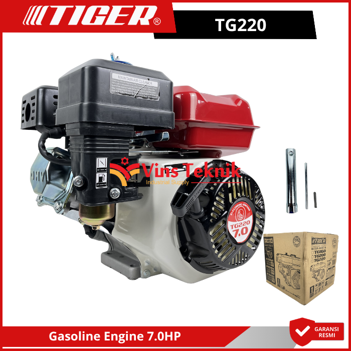 Tiger TG220 adalah mesin penggerak bensin serbaguna (gasoline engine) yang umum digunakan untuk menggerakkan berbagai peralatan seperti pompa air, generator listrik (genset), atau mesin penggiling. Mesin ini merupakan tipe 4-tak yang dikenal cukup bertenaga untuk kebutuhan rumah tangga, pertanian, maupun industri kecil.