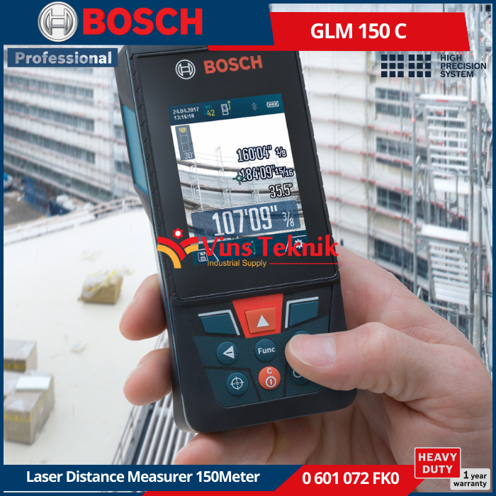 - Satuan... Read More Bosch GLM 150 C Laser Distance merupaka Solusi cerdas untuk mengukur dan mendokumentasikan di semua lingkungan bahkan di luar ruangan. Penargetan yang tepat Berkat jendela bidik digital dengan fungsi zoom juga untuk aplikasi luar dan jarak jauh.