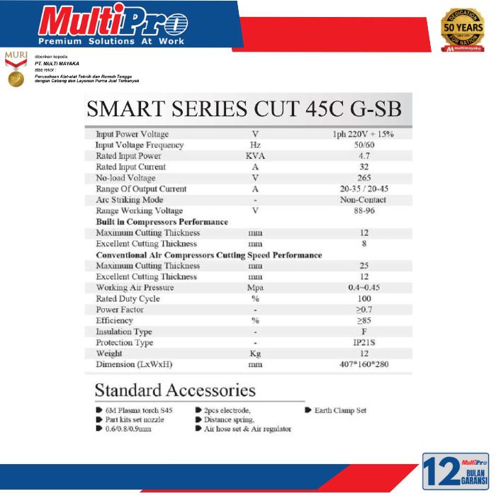 MULTIPRO Cut 45C G-SB Mesin Plasma Cutting Inverter Cut 45C G-SB (Smart Series)