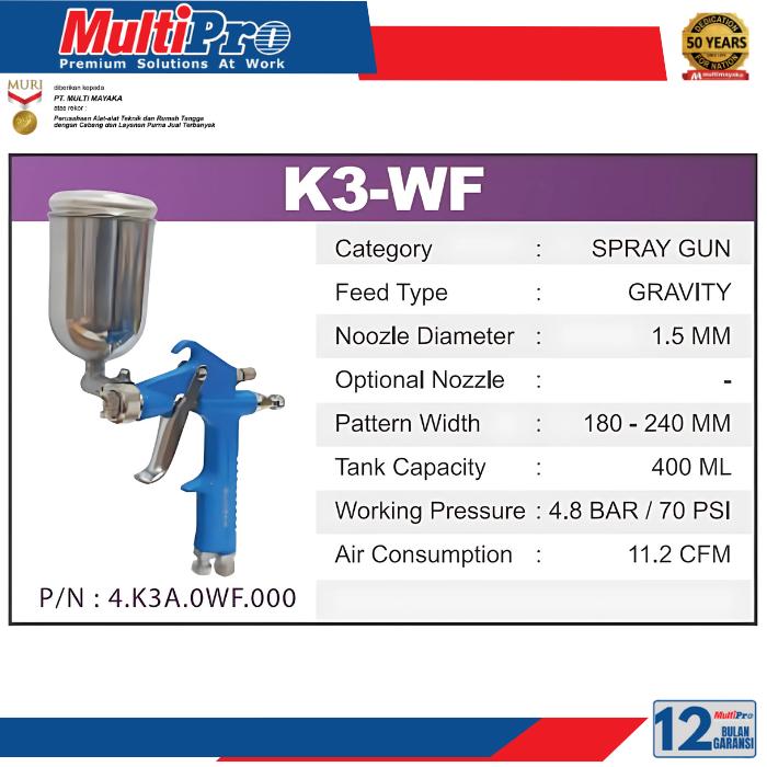MULTIPRO K3-WF Spray Gun K3-WF Air Kompresor 200ML