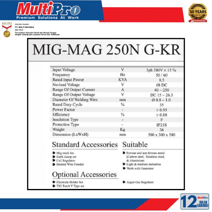 MULTIPRO Mesin Las MIG-MAG 250 N G-KR Trafo Listrik