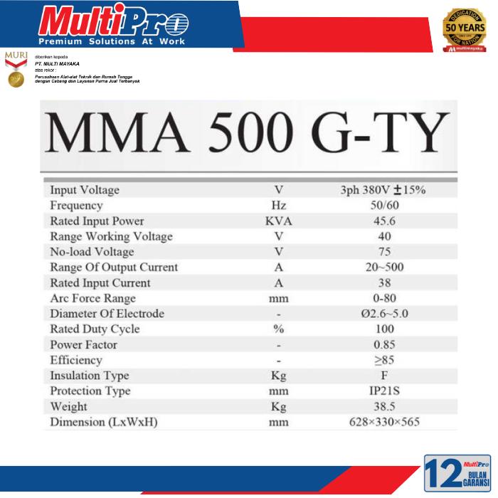 MULTIPRO MMA 500 G-TY Mesin Las inverter Trafo Las