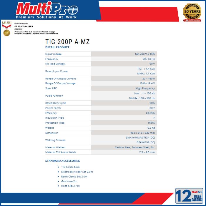 MULTIPRO TIG200P A-MZ Mesin Las Inverter MULTIPRO TIG 200P A-MZ