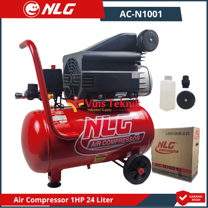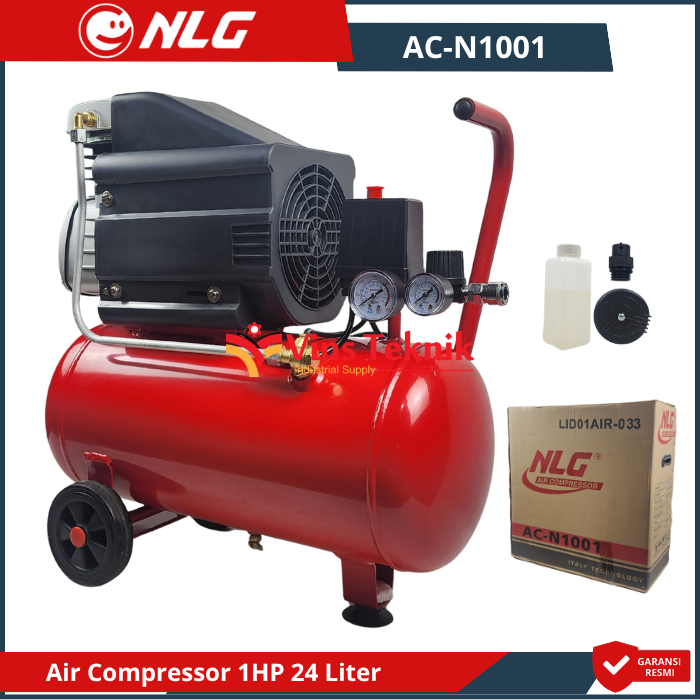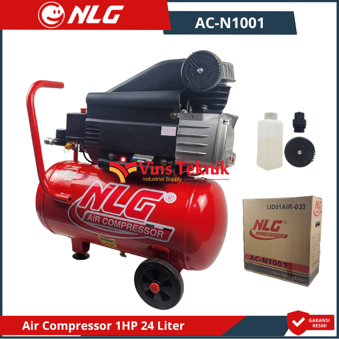 Kompresor NLG AC-N1001 (sering disebut juga seri AC-1001) adalah kompresor angin tipe direct driven portabel yang dirancang untuk kebutuhan bengkel ringan, pengecatan, hingga penggunaan hobi. Fitur utamanya mencakup pengisian angin yang cepat dengan tekanan bar yang stabil