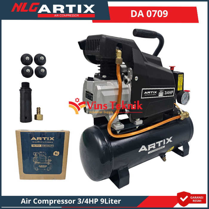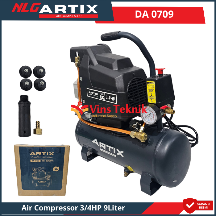 Artix DA 0709 adalah sebuah kompresor angin listrik tipe direct driven (menggunakan oli) dengan kapasitas tabung 9 liter. Alat ini dirancang untuk kebutuhan skala kecil seperti pengisian angin ban, bengkel, pembersihan debu, hingga pengecatan ringan (pagar/tralis)