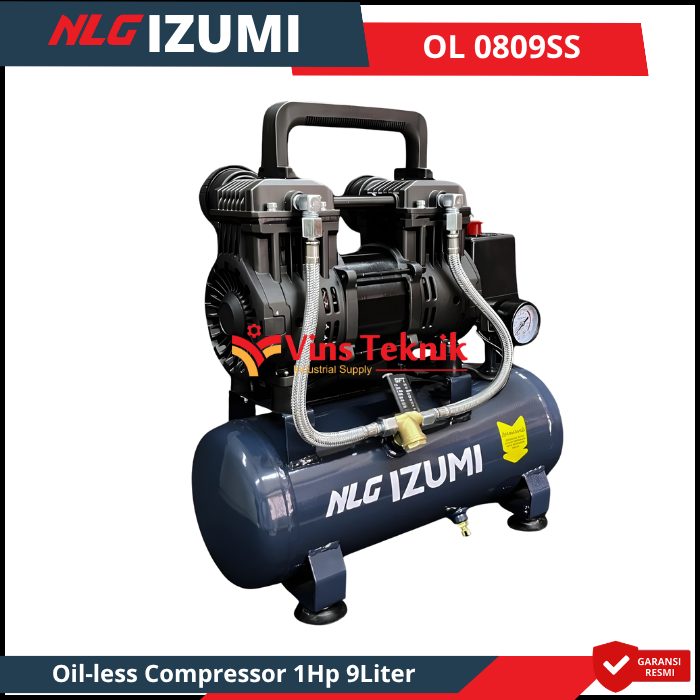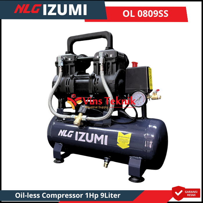 NLG IZUMI OL 0809SS Mesin Kompresor Udara Compressor Silent Oilless 1HP 9Liter OL0809SS
