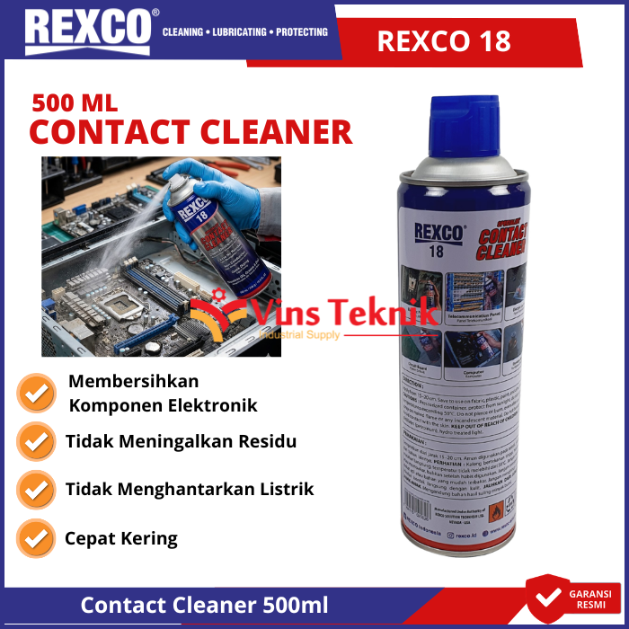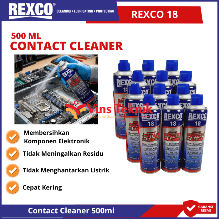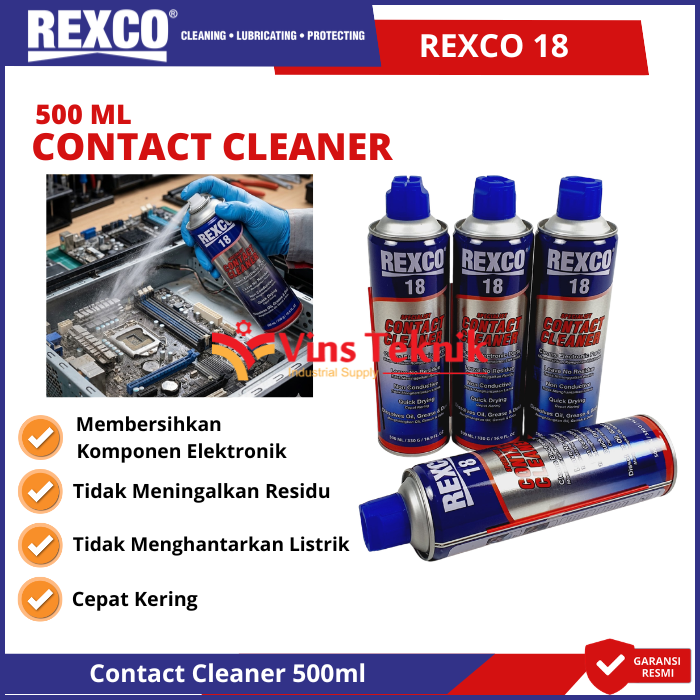REXCO 18 Specialist Contact Cleaner 500ml adalah cairan pembersih aerosol yang dirancang khusus untuk membersihkan komponen elektrik dan elektronik