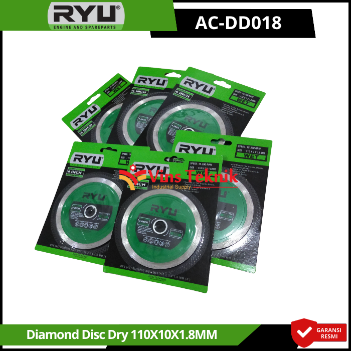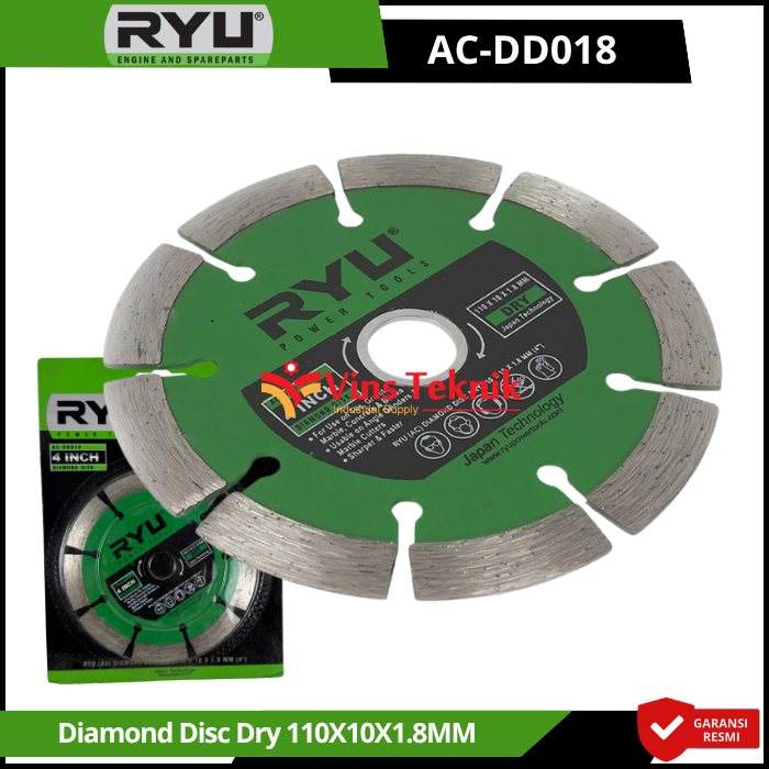 RYU AC-DD018 merupakan mata gerinda potong kering (Dry Diamond Disc) berukuran 4 inci yang dirancang khusus untuk memotong material keras dengan hasil yang rapi