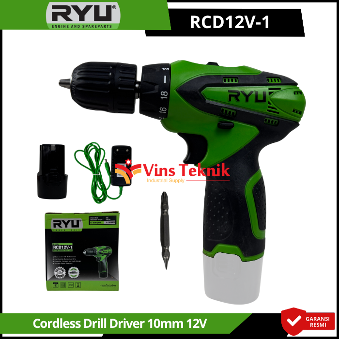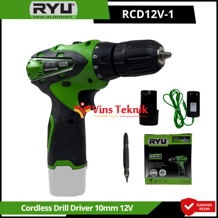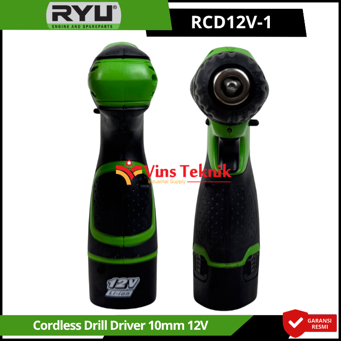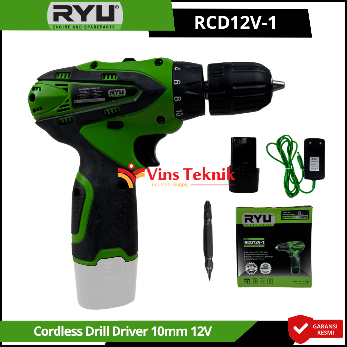 RYU RCD12V-1 adalah mesin bor nirkabel (cordless drill) 12 volt yang dirancang untuk pekerjaan ringan seperti menyekrup dan mengebor kayu atau besi