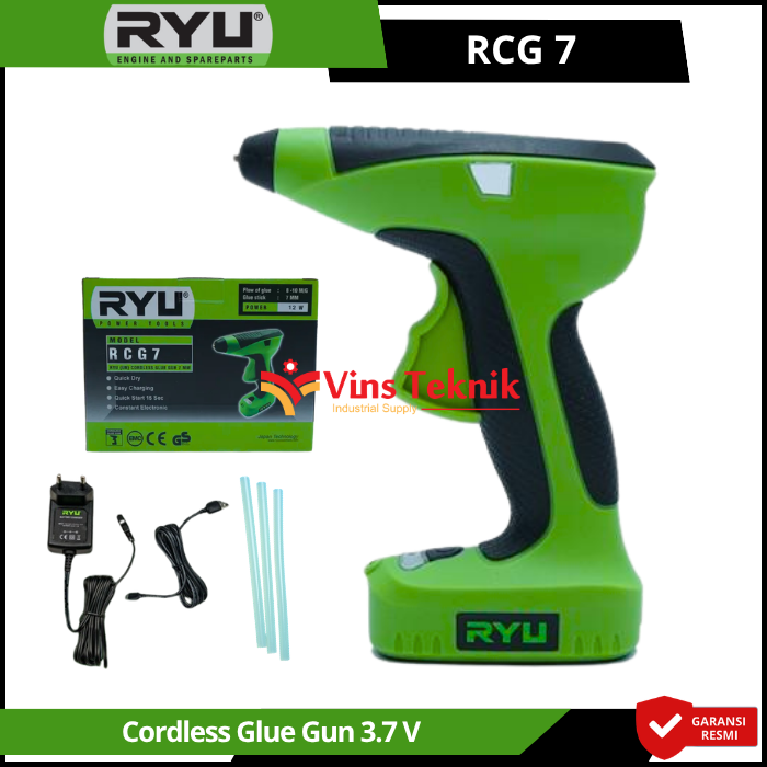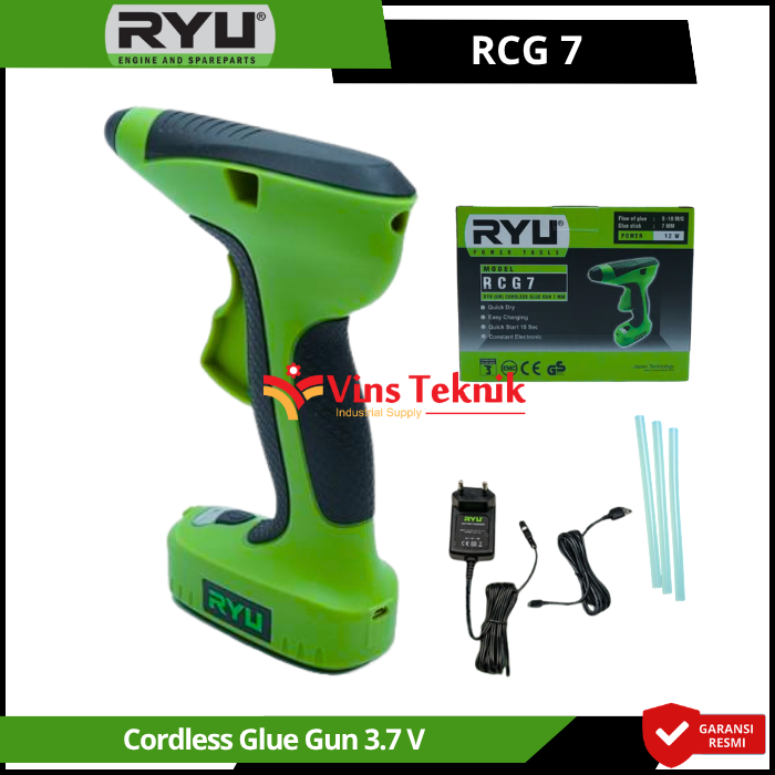 RYU RCG 7 adalah alat lem tembak tanpa kabel (cordless glue gun) yang dirancang untuk kemudahan penggunaan tanpa gangguan kabel