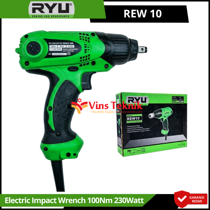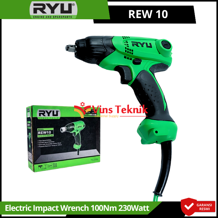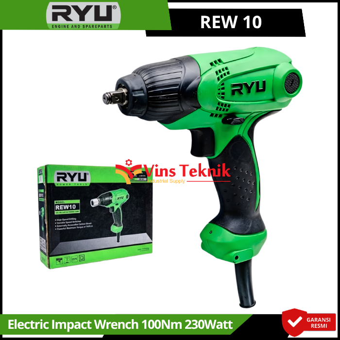 RYU REW10 adalah mesin pembuka baut listrik (Electric Impact Wrench) yang dirancang untuk pekerjaan ringan hingga menengah dengan desain yang ringkas dan bertenaga. Alat ini populer untuk penggunaan di bengkel otomotif atau perakitan karena efisiensinya dalam membuka dan mengencangkan baut