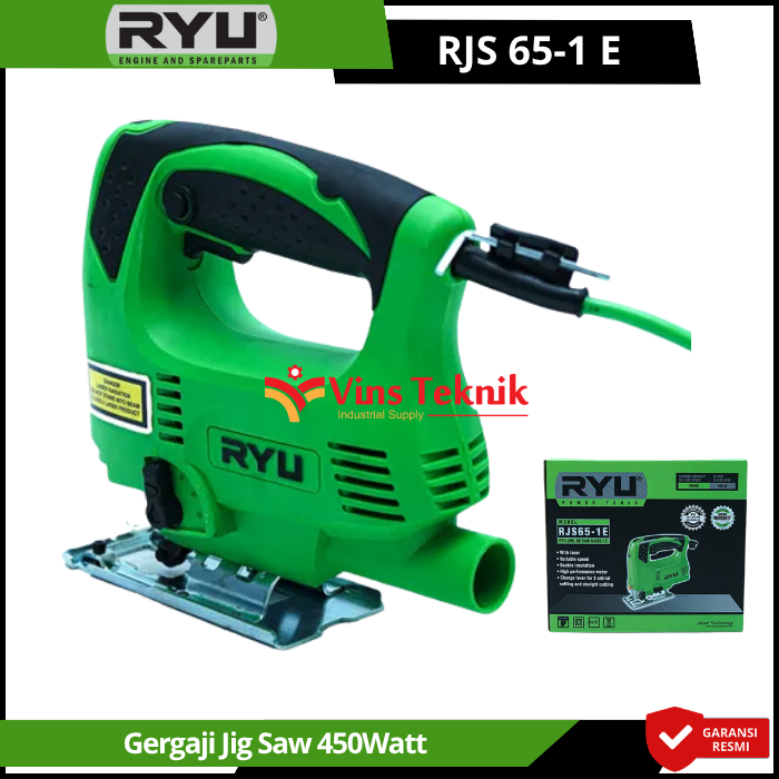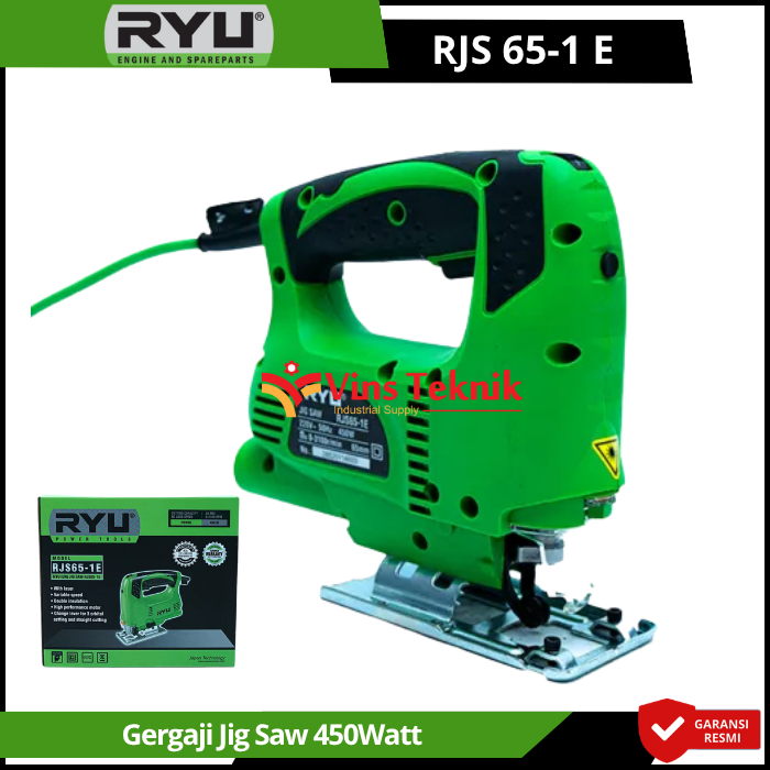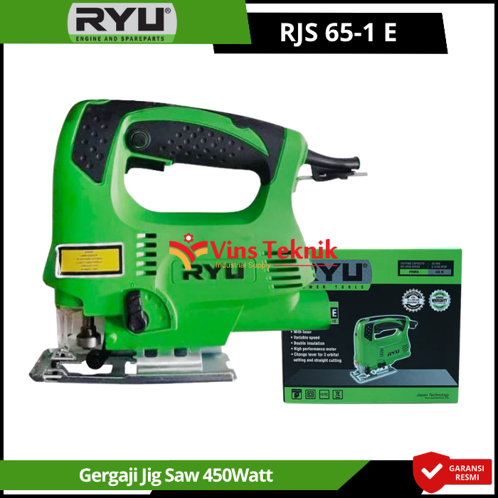 Ryu RJS65-1E adalah mesin gergaji jigsaw listrik yang dirancang untuk pemotongan presisi pada kayu dan logam tipis. Alat ini memiliki fitur unggulan seperti Laser Guide untuk membantu kelurusan potongan dan Variable Speed untuk menyesuaikan kecepatan sesuai material
