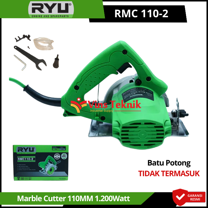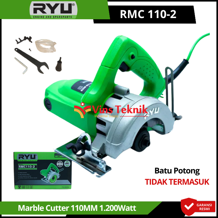 RYU RMC110-2 adalah mesin pemotong keramik (marble cutter) bertenaga 1.200 Watt yang dirancang untuk penggunaan profesional maupun rumah tangga. Alat ini multifungsi karena bisa digunakan untuk memotong marmer, keramik, granit, beton, hingga kayu dengan mata potong yang sesuai.