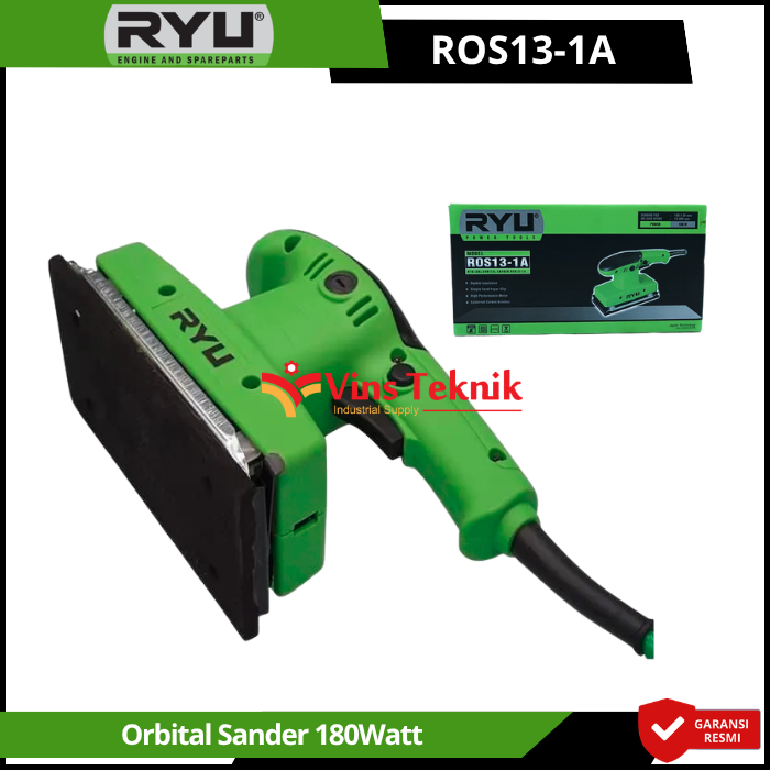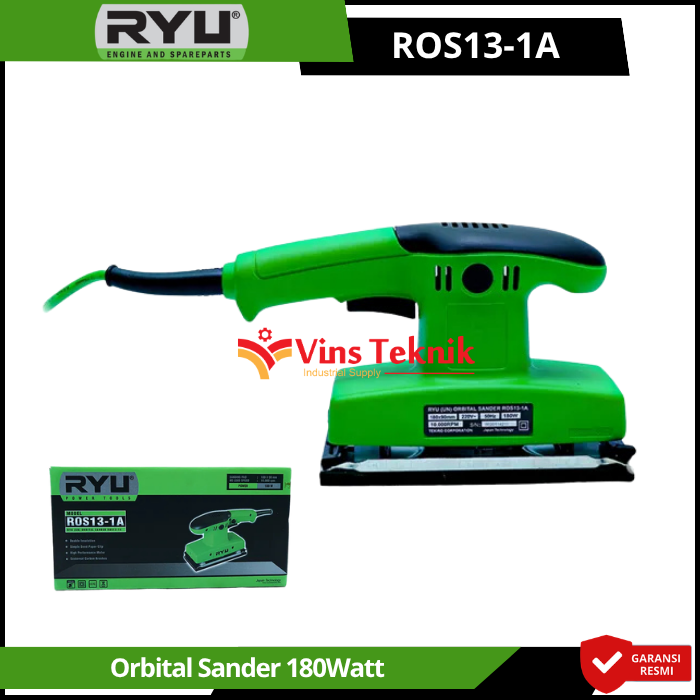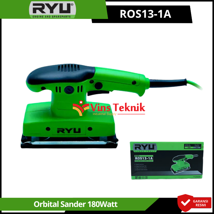 RYU ROS13-1A adalah mesin amplas orbital (orbital sander) yang dirancang untuk pengamplasan halus pada permukaan kayu maupun besi