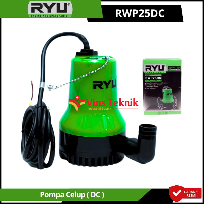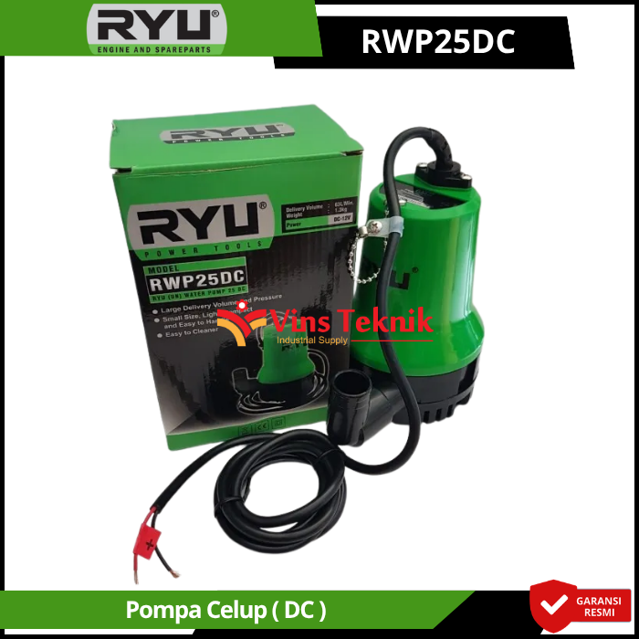 Serbaguna: Cocok digunakan untuk menguras kolam ikan, akuarium,... Read More Pompa air RYU RWP25DC adalah pompa celup (submersible) portabel yang dirancang khusus untuk penggunaan dengan daya arus searah (DC), seperti aki kendaraan atau baterai 12V