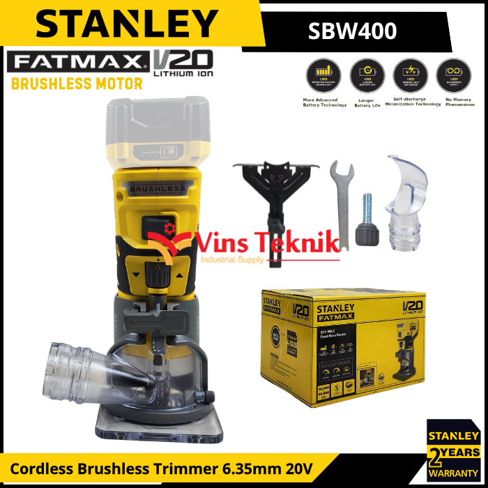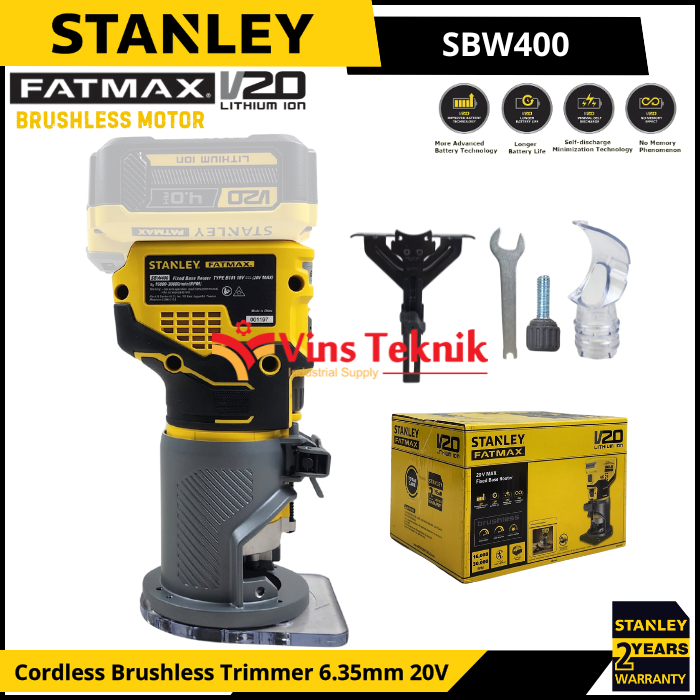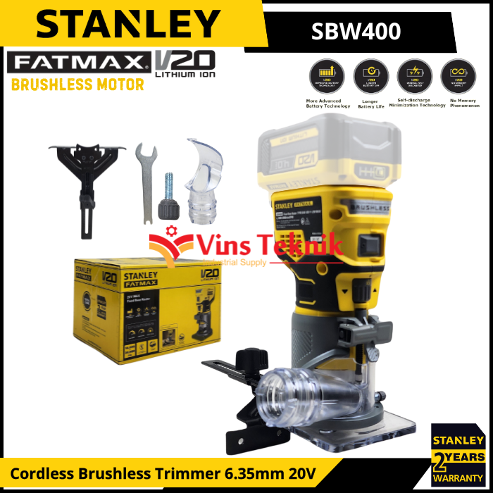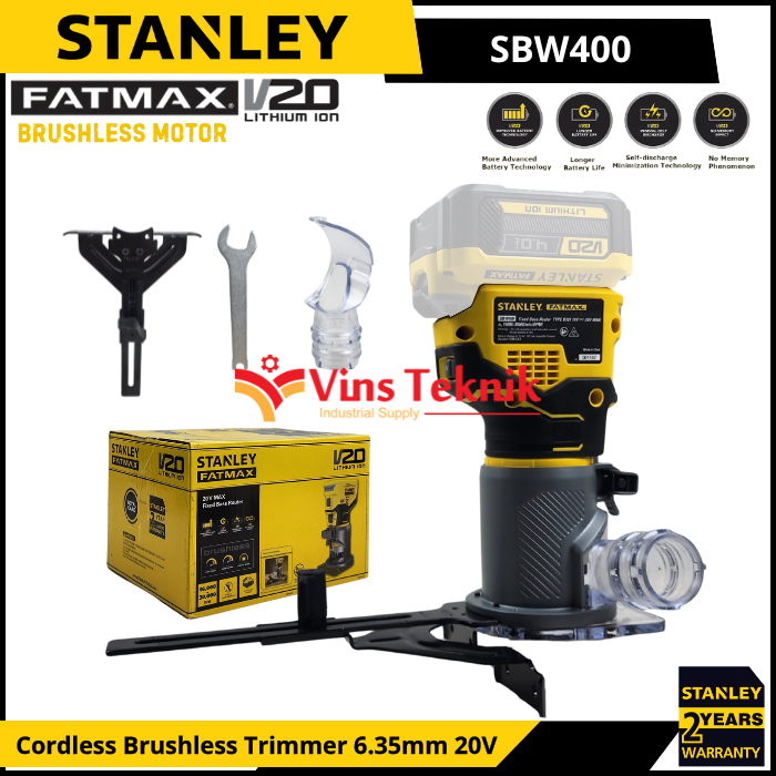 STANLEY SBW400 Mesin Profil Kayu Baterai Cordless Brushless Trimmer Router 6.35MM 20V SBW 400