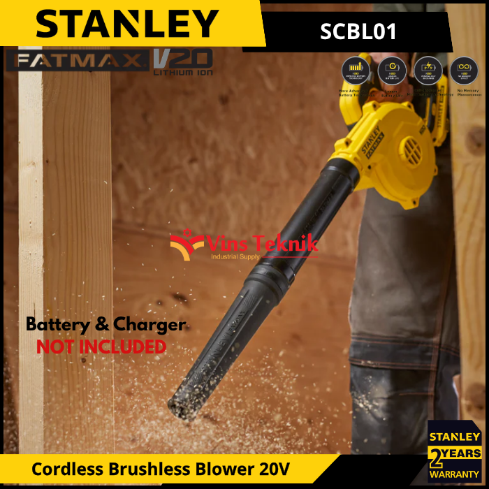 Stanley SCBL01 adalah blower nirkabel (cordless) berperforma tinggi yang dirancang untuk membersihkan debu, kotoran, atau dedaunan di bengkel dan area kerja