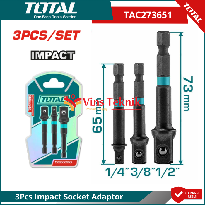 TOTAL TAC273651 3Pcs Impact Socket Adaptor Impact Driver To Impact Wrench TAC 273651