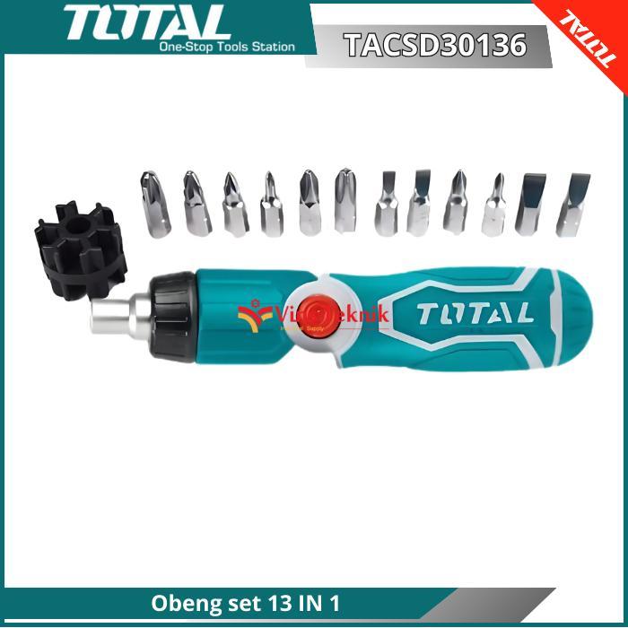 TOTAL TACSD30136 Screwdriver Ratchet Set 13 In 1 Obeng Set Rachet 13Pc