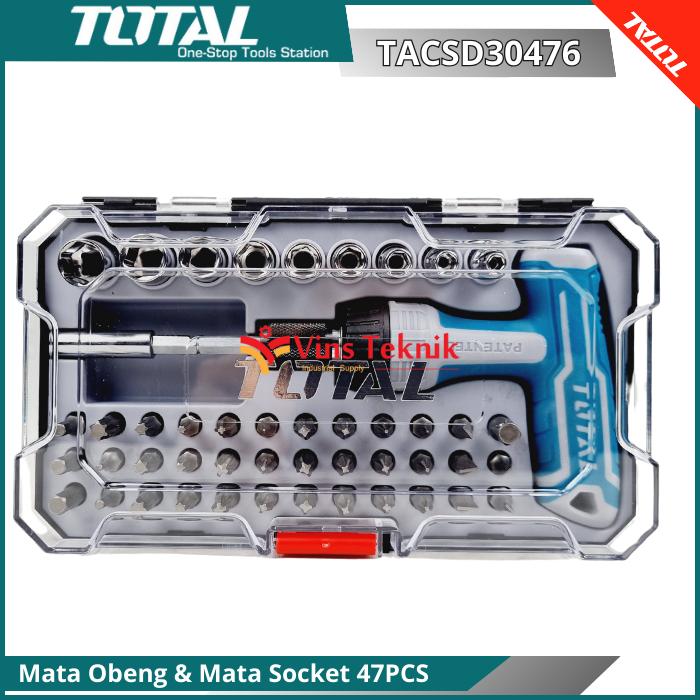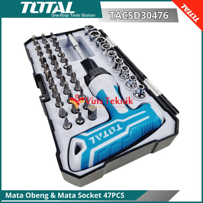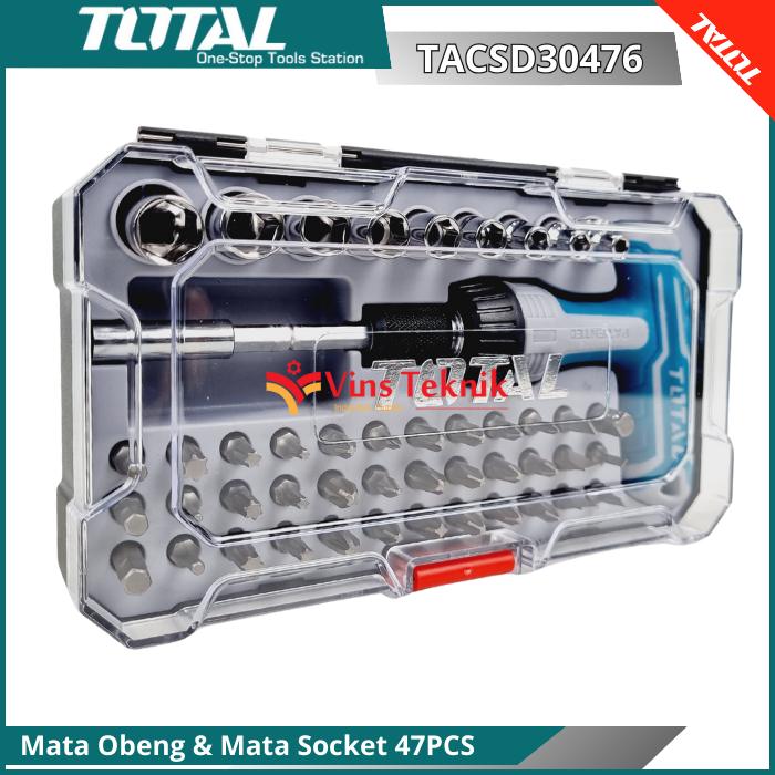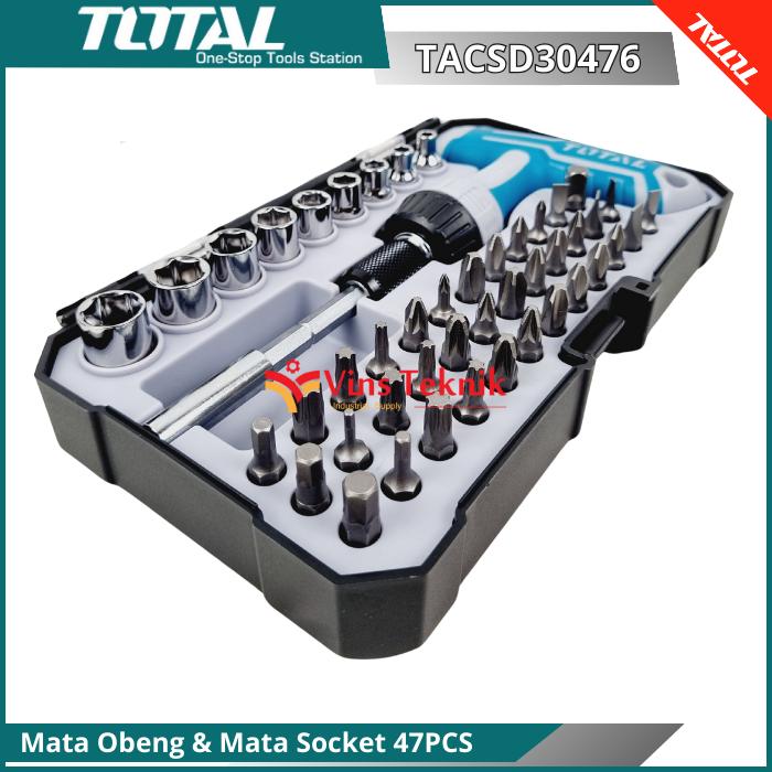 TOTAL TACSD30476 T-handle Wrench Screwdriver Set Mata Obeng & Mata Socket 47pcs TACSD 30476