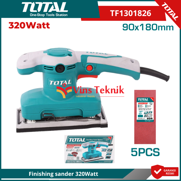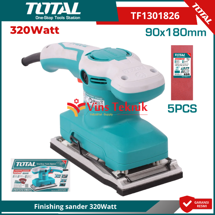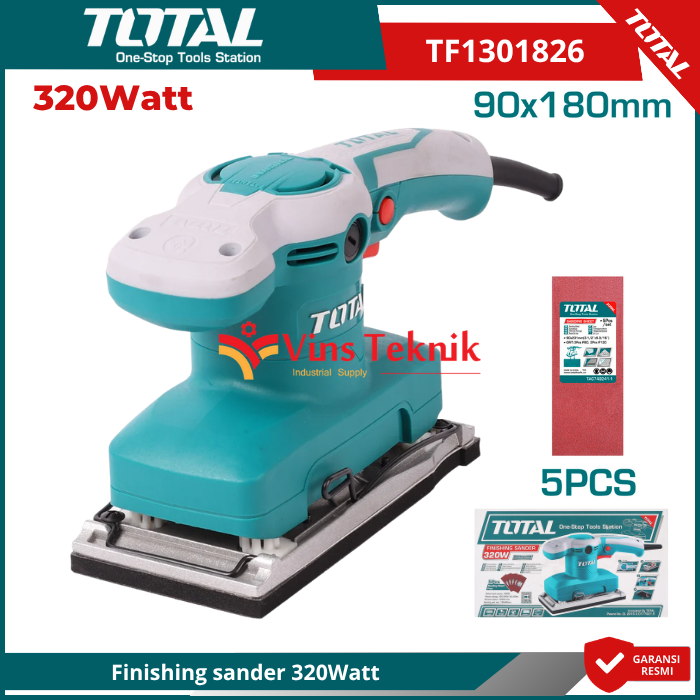 TOTAL TF1301826 adalah mesin amplas jenis finishing sander atau orbital sander dengan daya 320 Watt yang dirancang untuk menghaluskan permukaan kayu atau logam