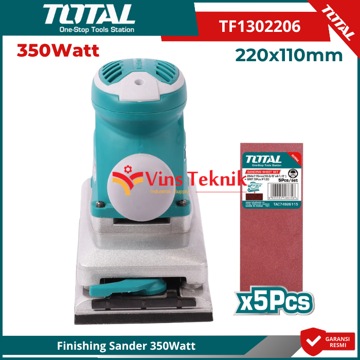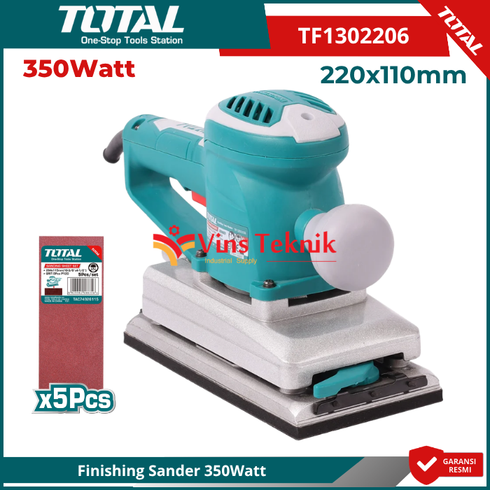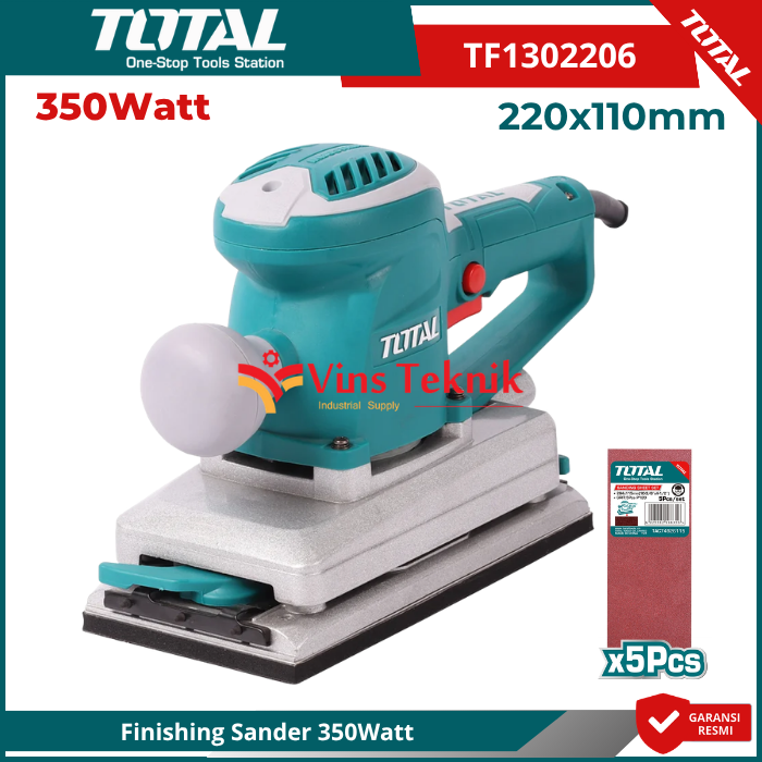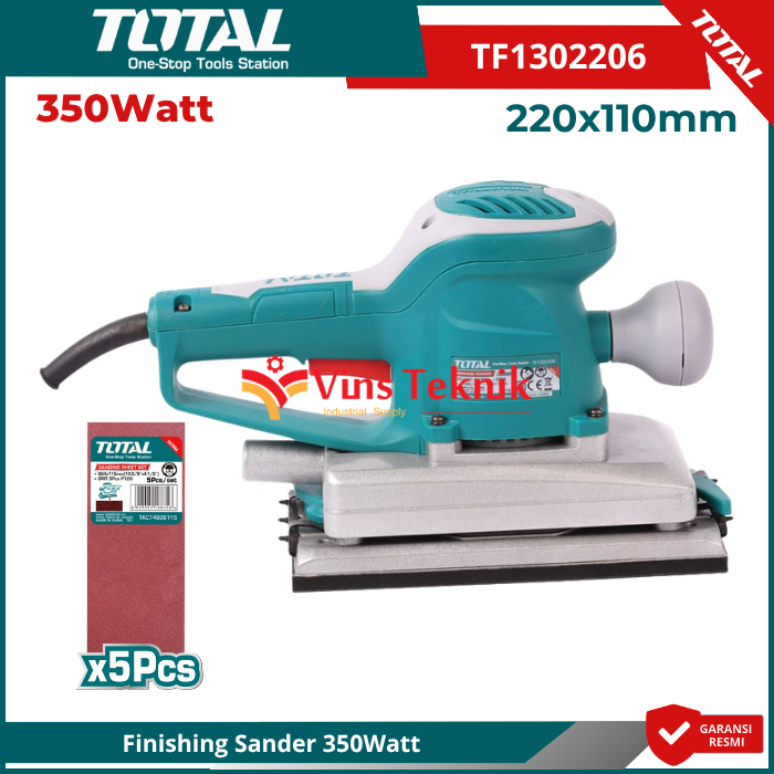 Total TF1302206 adalah mesin amplas tipe finishing sander dengan daya 350 Watt yang dirancang untuk menghaluskan permukaan kayu, logam, hingga plastik secara efisien
