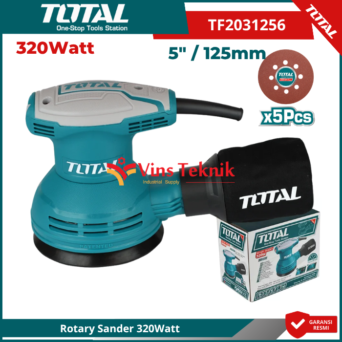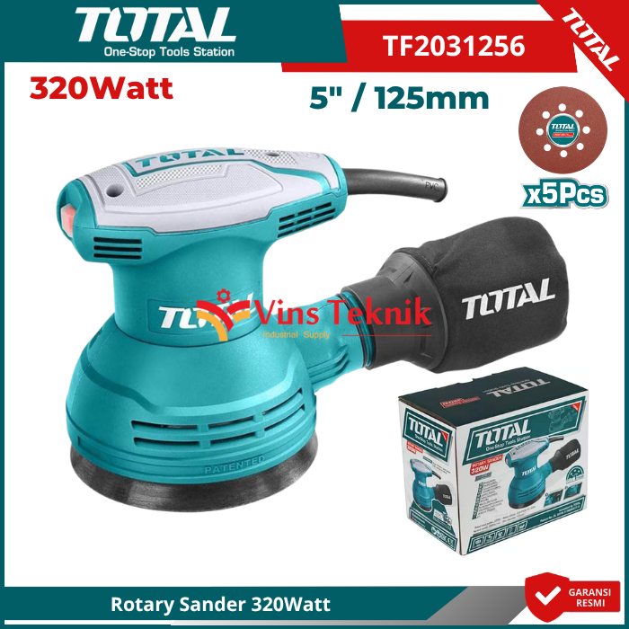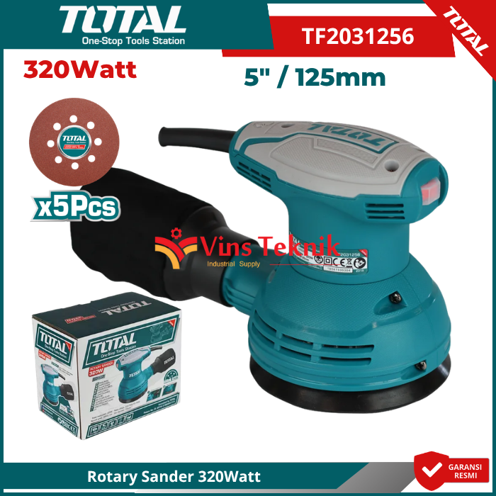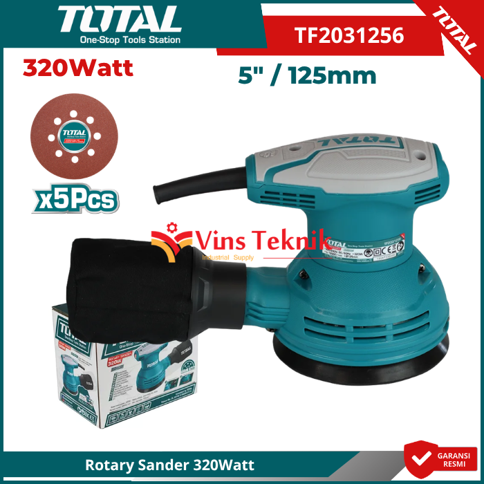 TOTAL TF2031256 Mesin Amplas Bulat Listrik Rotary Random Orbital Sander 5" 125MM 320Watt TF 2031256