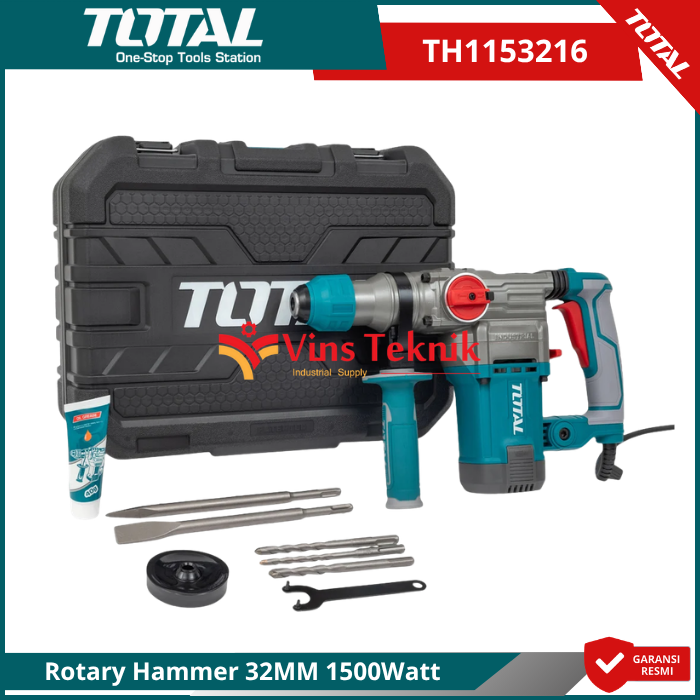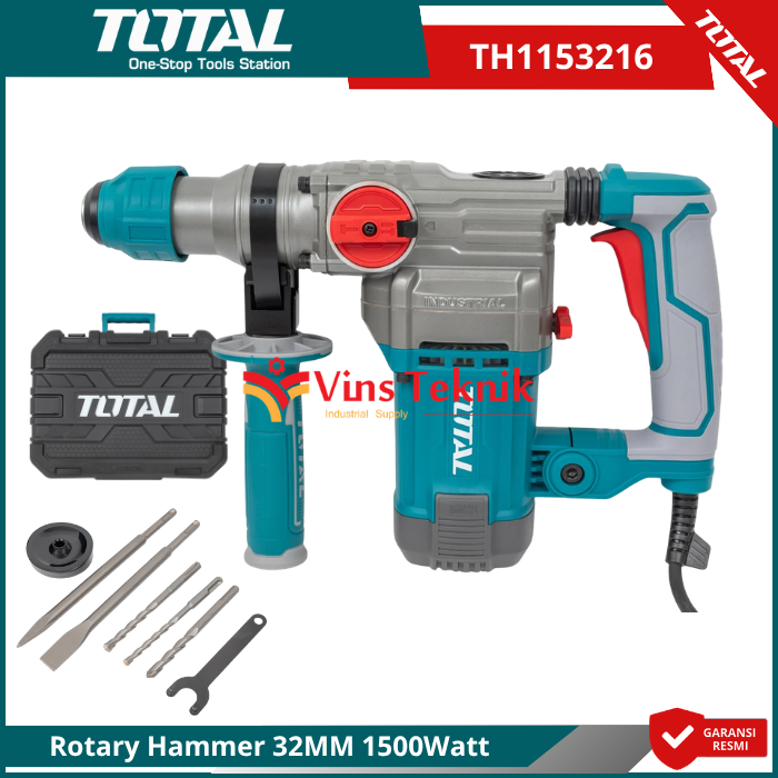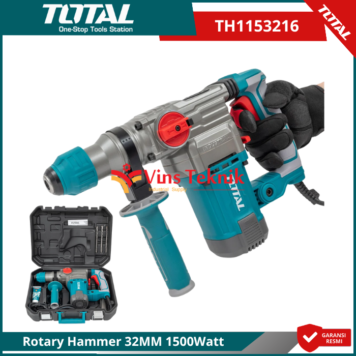 Total TH1153216 adalah mesin bor Rotary Hammer kelas industrial dengan daya 1500W yang dirancang untuk pekerjaan berat seperti mengebor beton dan membobok