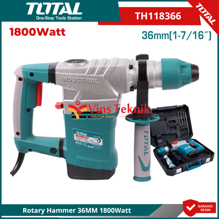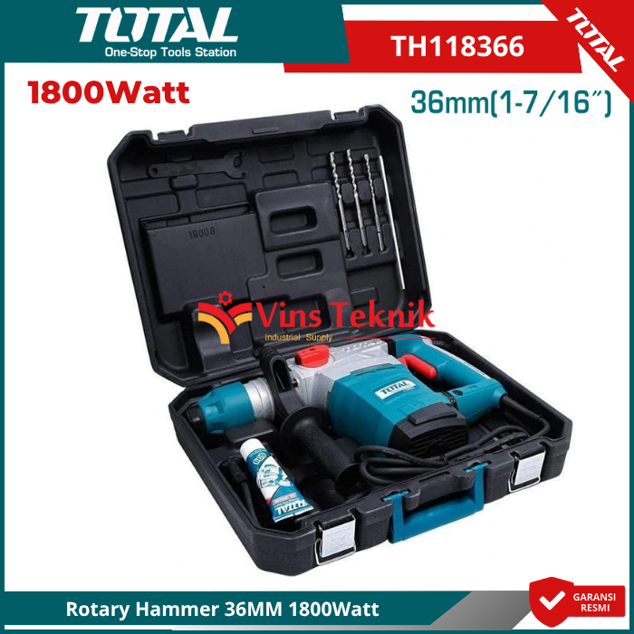 TOTAL TH118366 Mesin Bor Tembok Beton Rotary Hammer 36mm 1800Watt SDS Plus TH 118366