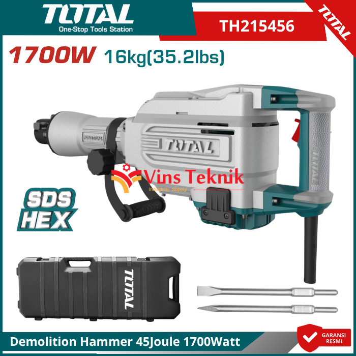 TOTAL TH215456 Mesin Bobok Beton Jack Hammer Demolition Hammer 45Joule 1700Watt TH 215456