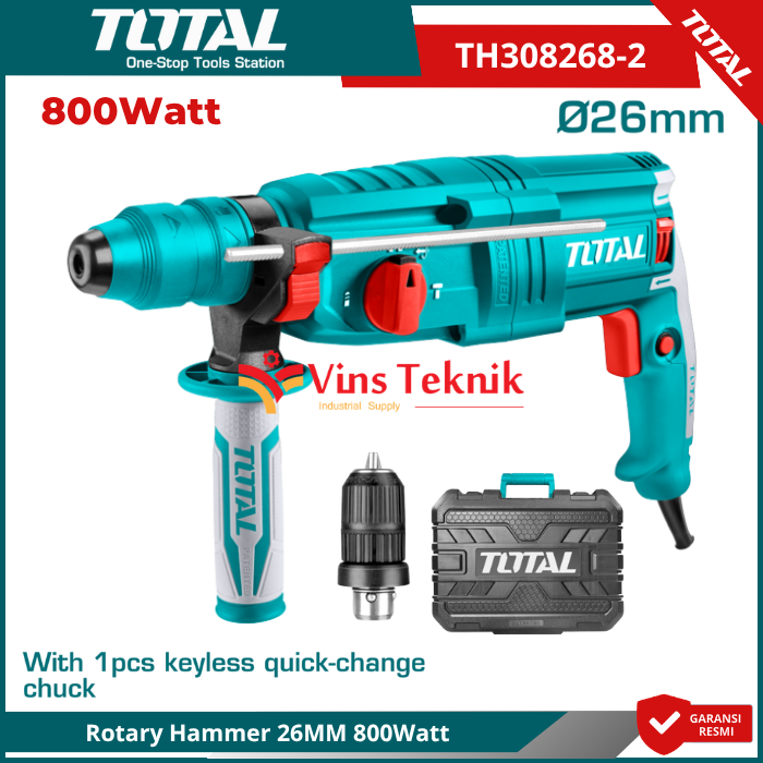 Mesin Bor Total TH308268-2 adalah rotary hammer yang dirancang untuk pekerjaan berat seperti mengebor beton, besi, kayu, serta melakukan pembobokan ringan