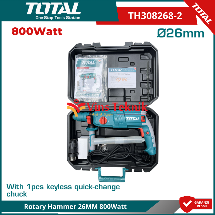 TOTAL TH308268-2 Mesin Bor Tembok Beton Rotary Hammer 26mm 800Watt SDS Plus TH 308268