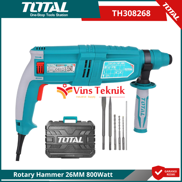 Mesin Bor Total TH308268 adalah rotary hammer yang dirancang untuk pekerjaan berat seperti mengebor beton, besi, kayu, serta melakukan pembobokan ringan