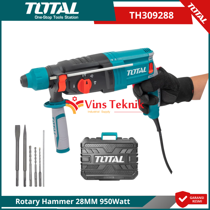 TOTAL TH309288 Mesin Bor Tembok Beton Rotary Hammer 28mm 950Watt SDS Plus