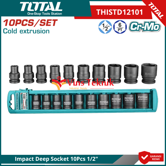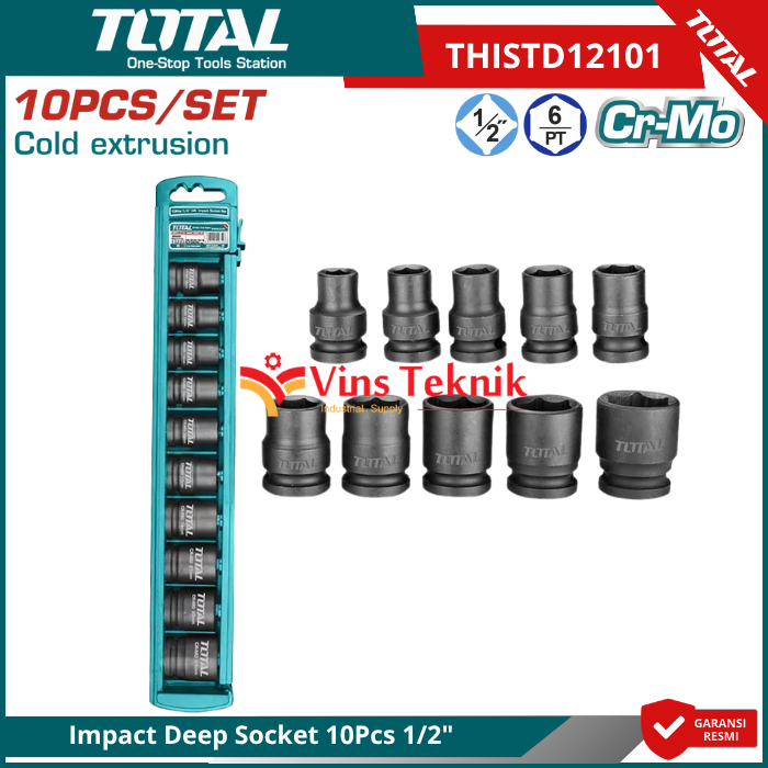Desain Impact-Ready: Khusus digunakan dengan... Read More OTAL THISTD12101 adalah set mata kunci soket impact (impact socket set) berukuran 1/2 inci yang terdiri dari 10 potong mata soket. Produk ini dirancang untuk penggunaan profesional pada mesin pembuka baut (impact wrench) karena materialnya yang tahan terhadap hentakan tinggi