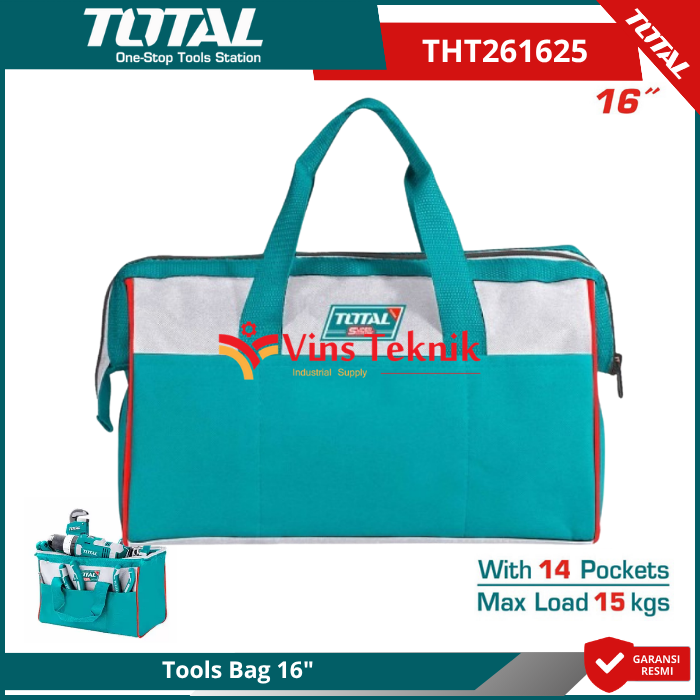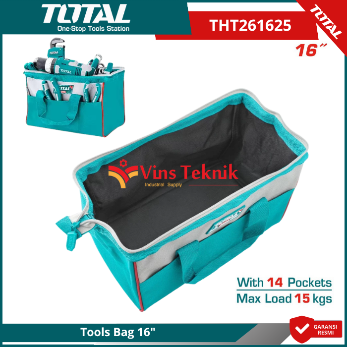 Total THT261625 adalah tas perkakas (tool bag) berukuran 16 inci yang dirancang untuk menyimpan dan mengorganisir berbagai alat pertukangan dengan aman dan mudah diakses