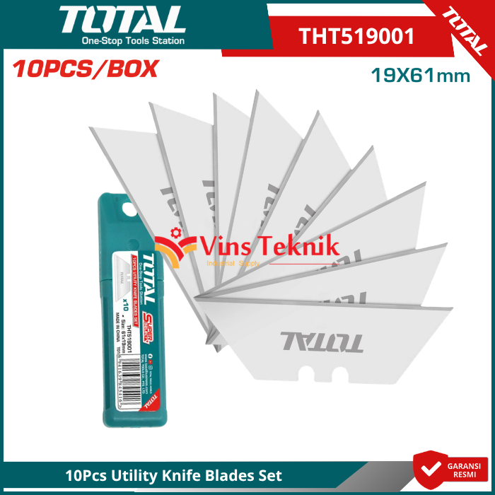 TOTAL THT519001 adalah set mata pisau utilitas (utility knife blades) yang dirancang untuk kebutuhan pemotongan presisi dan berat