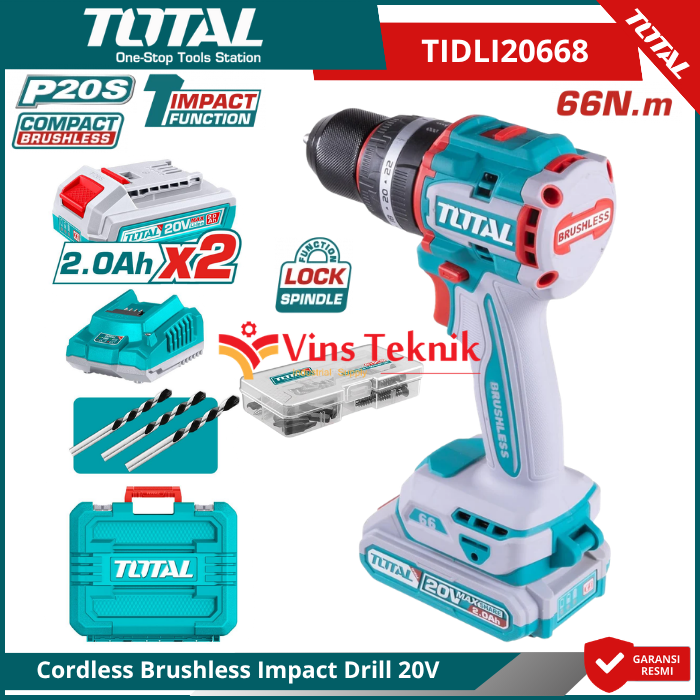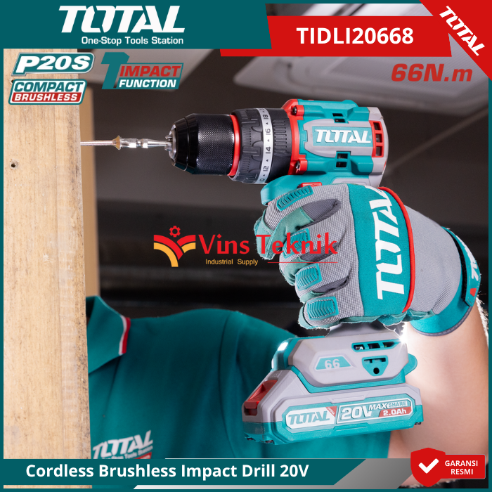 22+1+1 Pengaturan Torsi :... Read More TOTAL TIDLI20668 adalah mesin bor impact baterai (cordless) kelas industri yang menggunakan teknologi motor Brushless (tanpa sikat karbon), sehingga lebih awet dan bertenaga