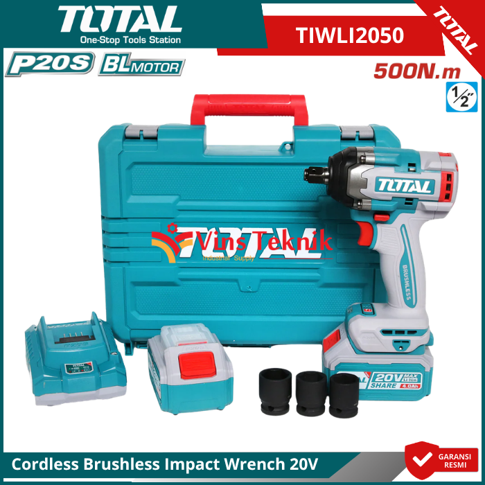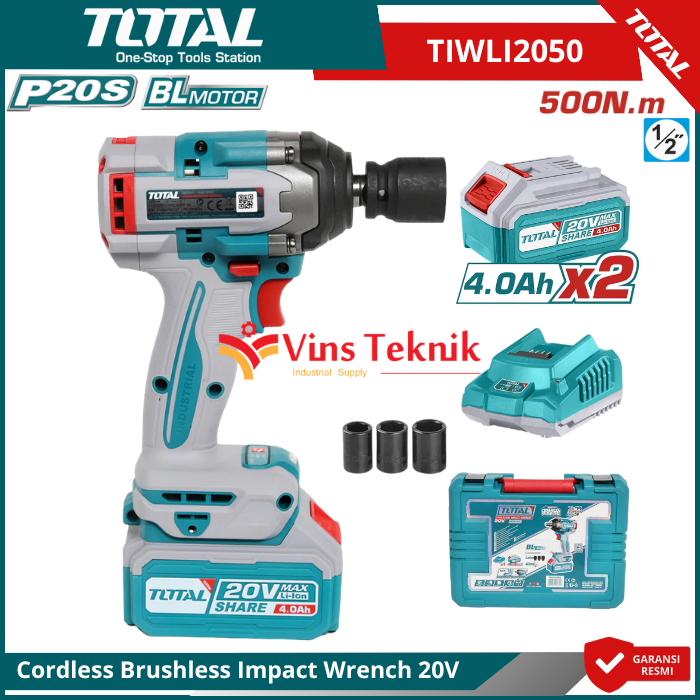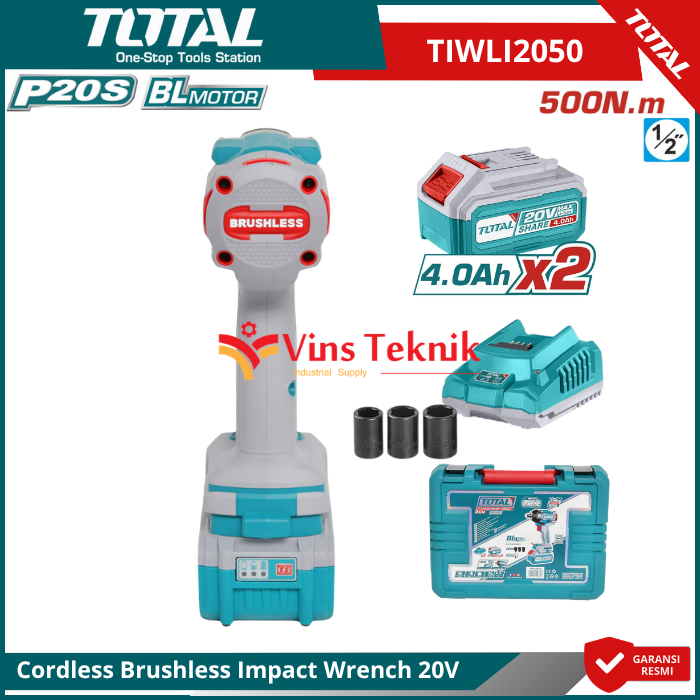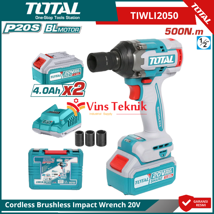 1 Unit Mesin Impact... Read More TOTAL TIWLI2050 adalah motor Brushless yang bertenaga tinggi dengan torsi pengencangan mencapai 500Nm dan torsi pelepas baut (nut-busting torque) hingga 650Nm