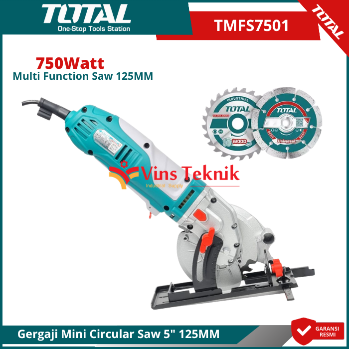 Desain Ergonomis... Read More Total TMFS7501 adalah mesin gergaji listrik multifungsi (mini circular saw) yang dirancang untuk pemotongan presisi pada berbagai material seperti kayu, logam tipis, dan keramik